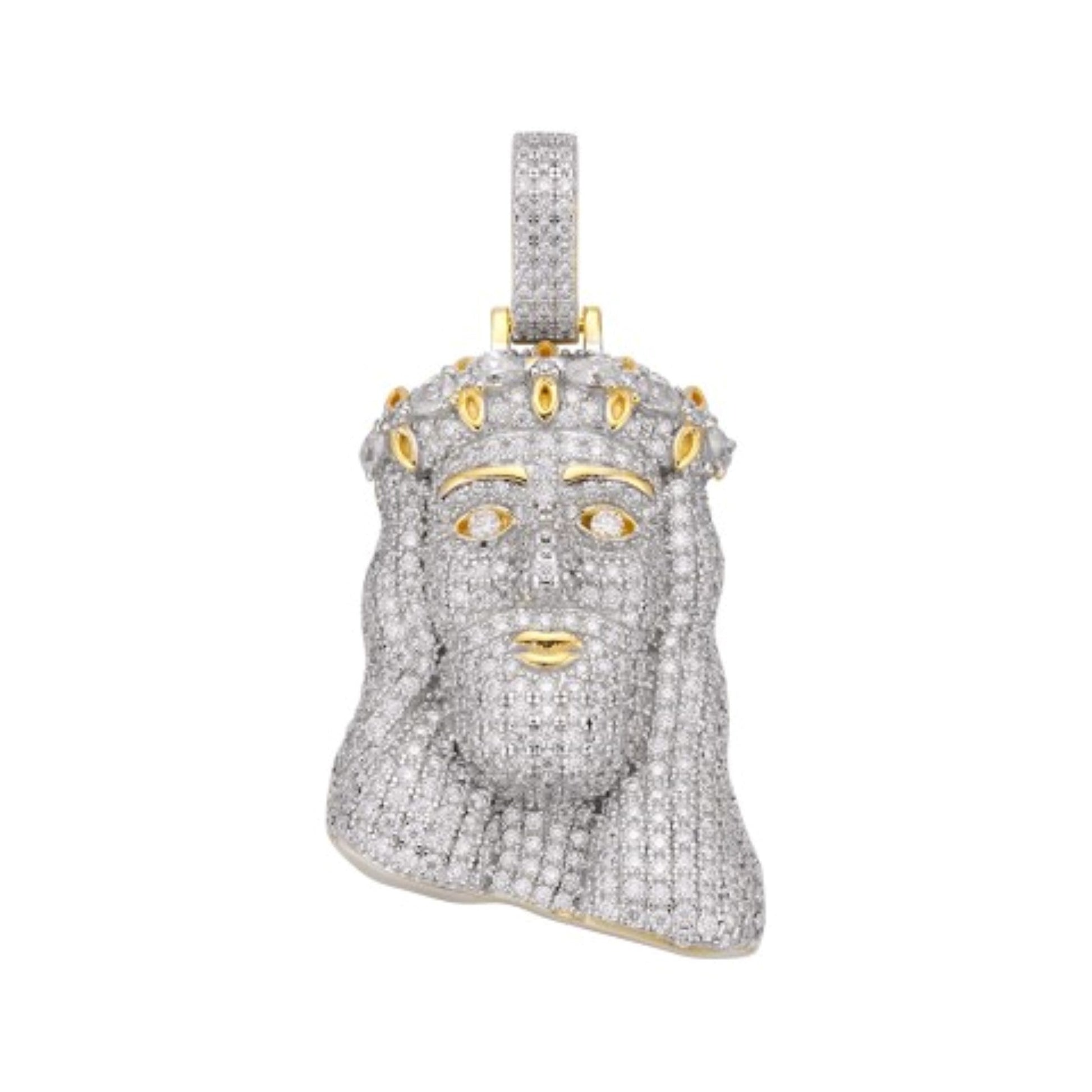 Sterling Silver Moissanite Jesus Face Religious Pendant RP+GP 3-1/3 Cttw