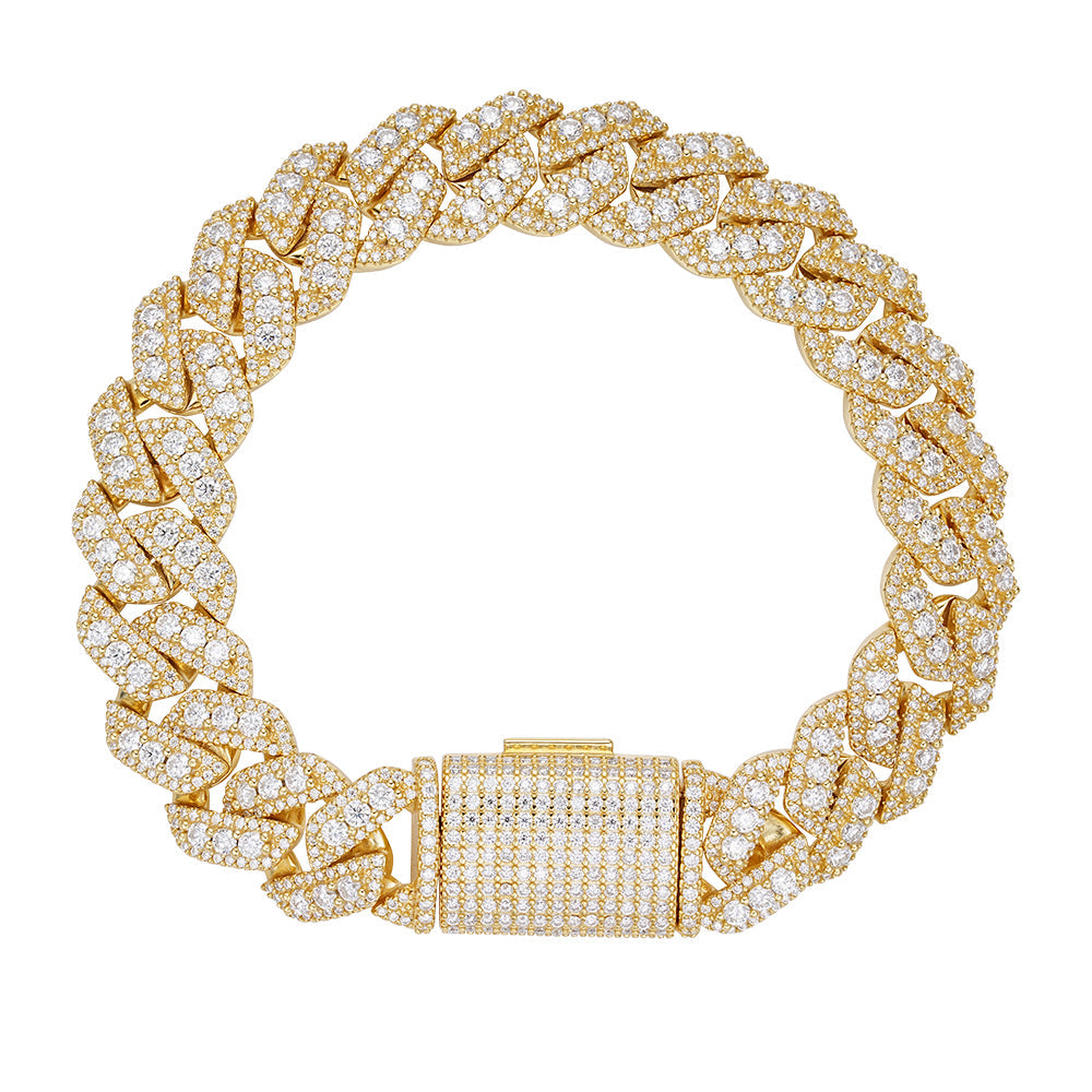 Sterling Silver Round Big Stone in Center Surrounded with Small Stones 14mm Moissanite Cuban Chain 8.5 Inch Bracelet GP 12-3/4 Cttw