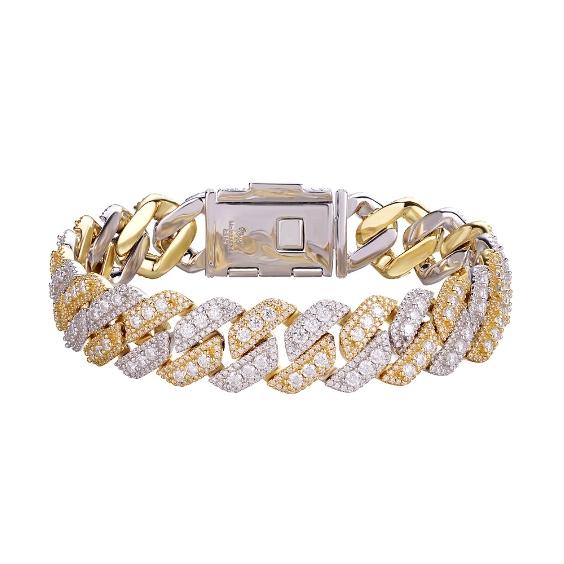 Sterling Silver Round Big Stone in Center Surrounded with Small Stones 14mm Moissanite Cuban Chain 8.5 Inch Bracelet RP+GP 12-3/4 Cttw