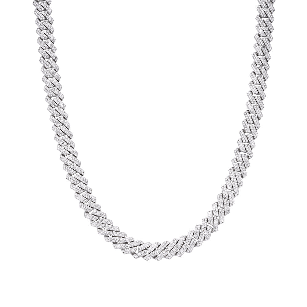 Sterling Silver Round Moissanite 22 Inch Snake Cuban Chain Necklace RP 15-5/8 Cttw