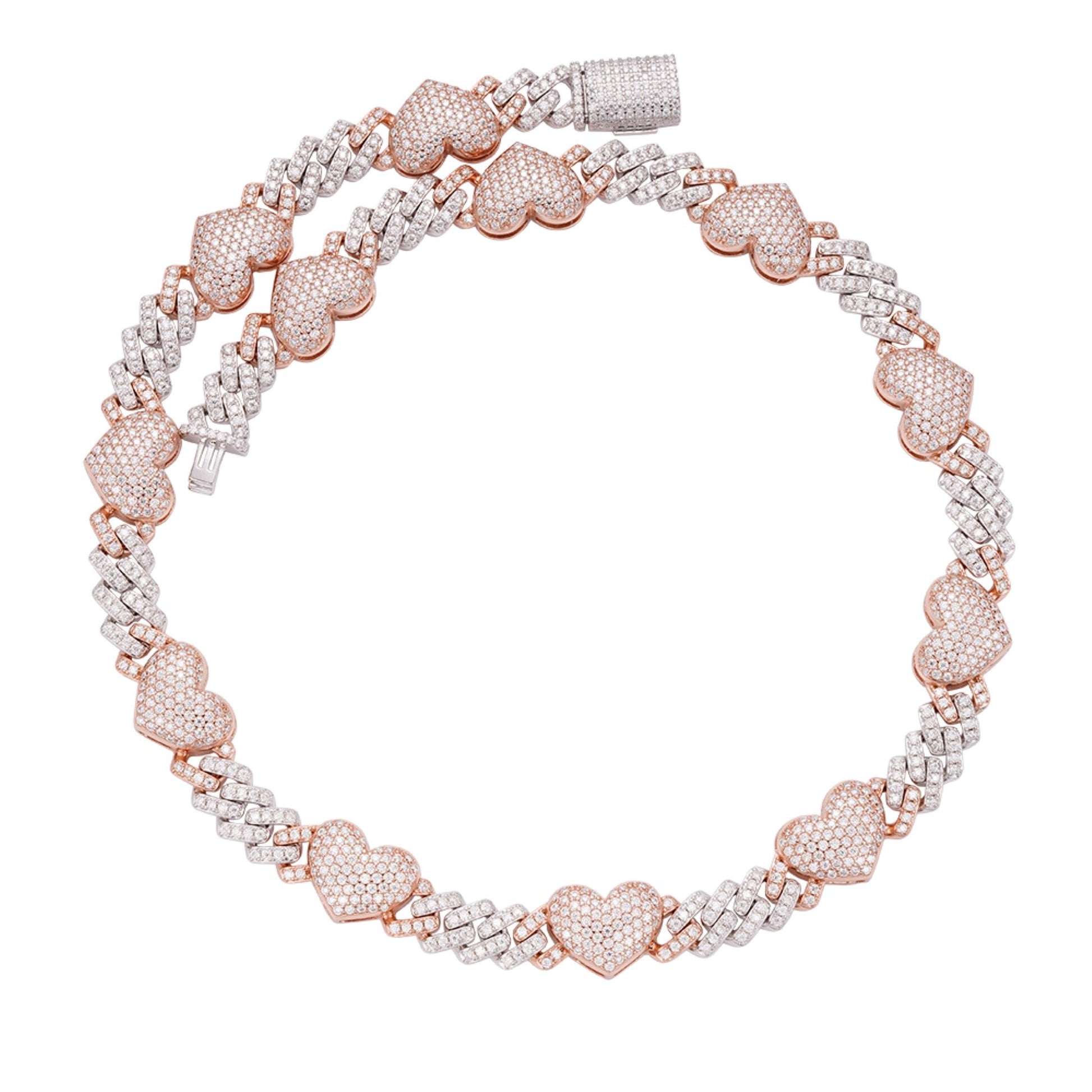 Sterling Silver Round Moissanite Cuban Heart Link Designer 18 Inch Necklace RP+PP 15-1/2 Cttw