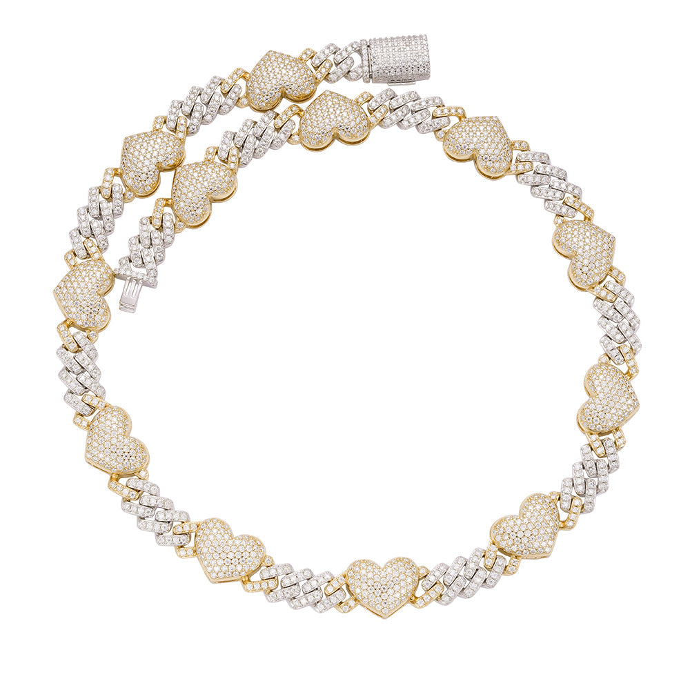 Sterling Silver Round Moissanite Cuban Heart Link Designer 18 Inch Necklace RP+GP 15-1/2 Cttw