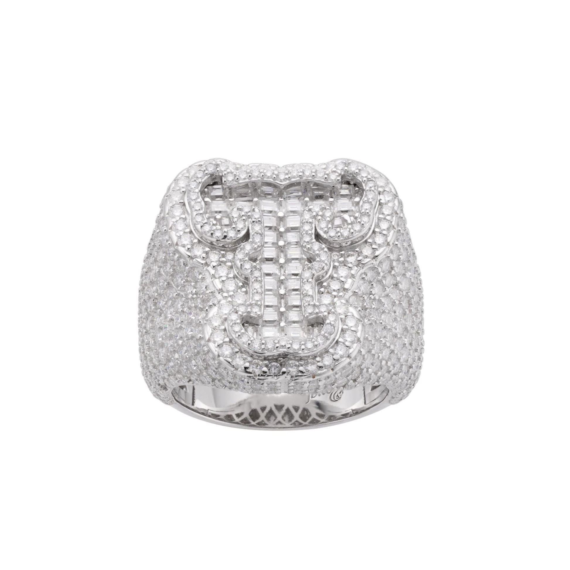 Sterling Silver Round Baugette Moissanite Albhabet T letter Initial SZ 10 Mens Ring RP 6-3/4 Cttw