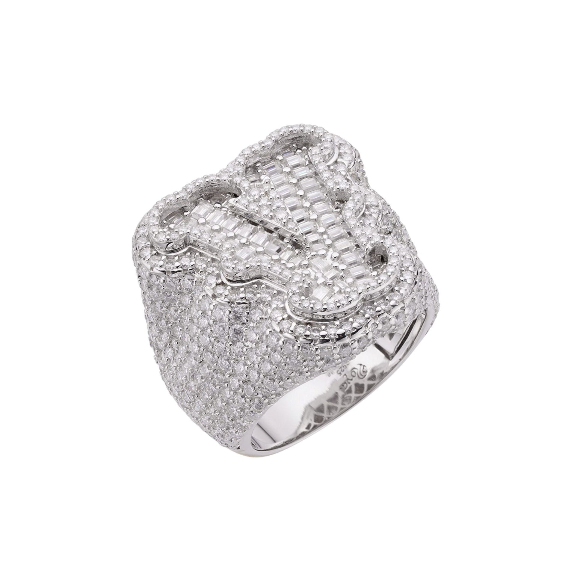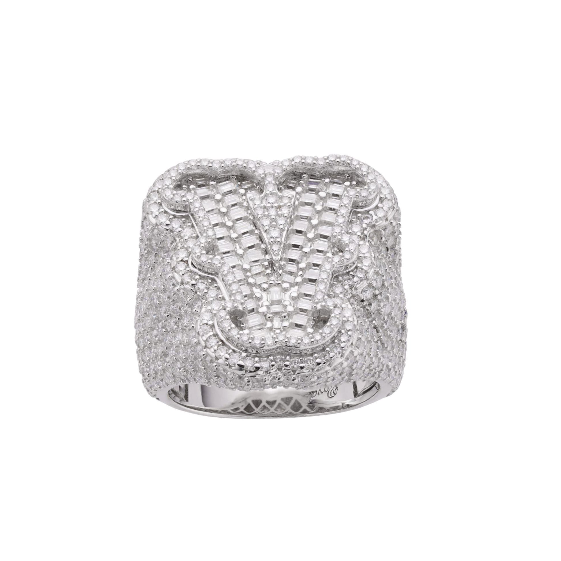 Sterling Silver Round Baugette Moissanite Albhabet V letter Initial SZ 10 Mens Ring RP 7-1/2 Cttw