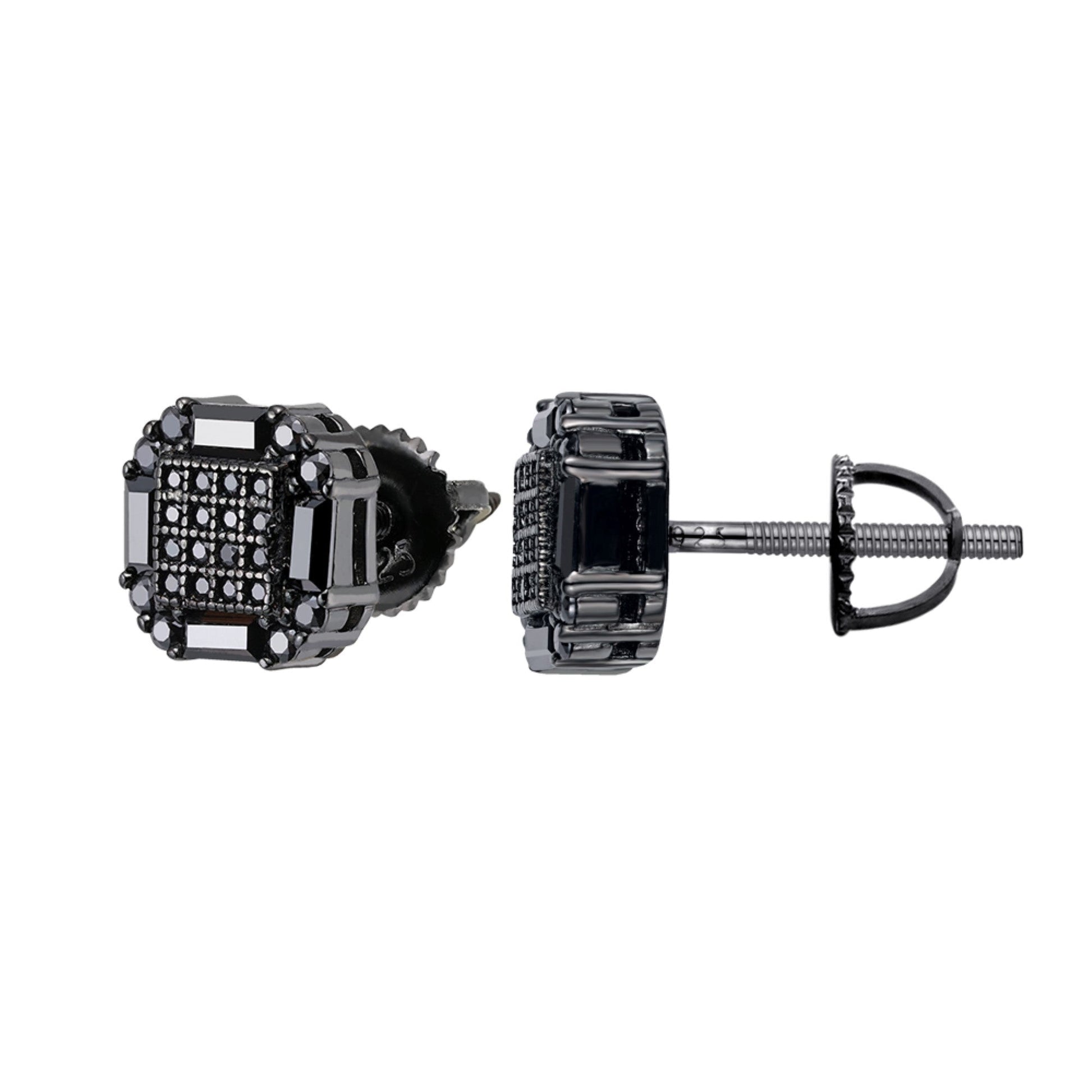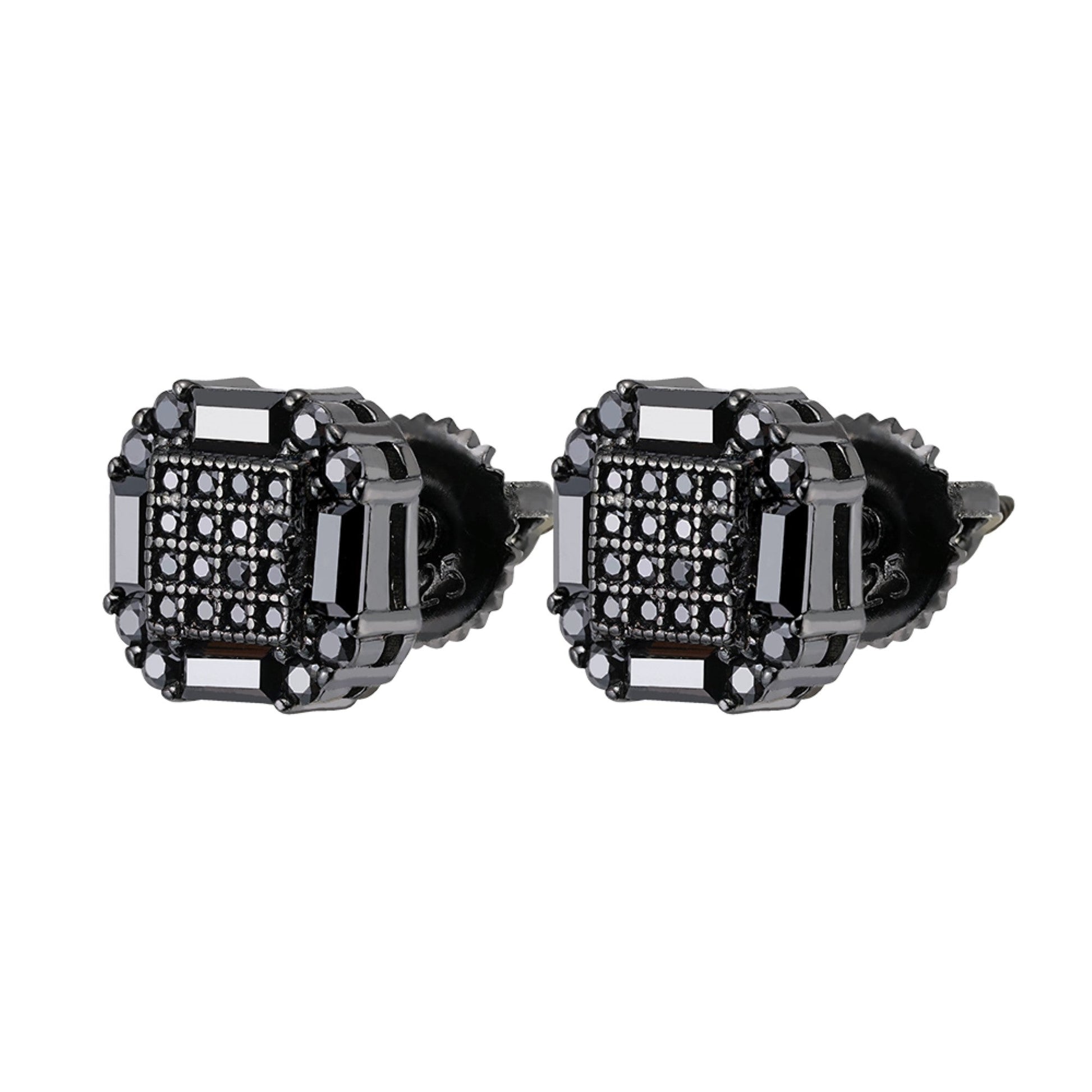 Sterling Silver Round Baguette Black Moissanite Square Shape Stud Earrings BP+BP 7/8 Cttw