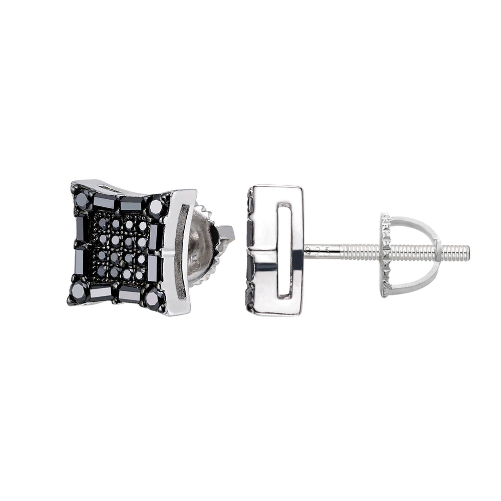 Sterling Silver Round Baguette Black Moissanite Square Shape Stud Earrings BP+RP 5/8 Cttw