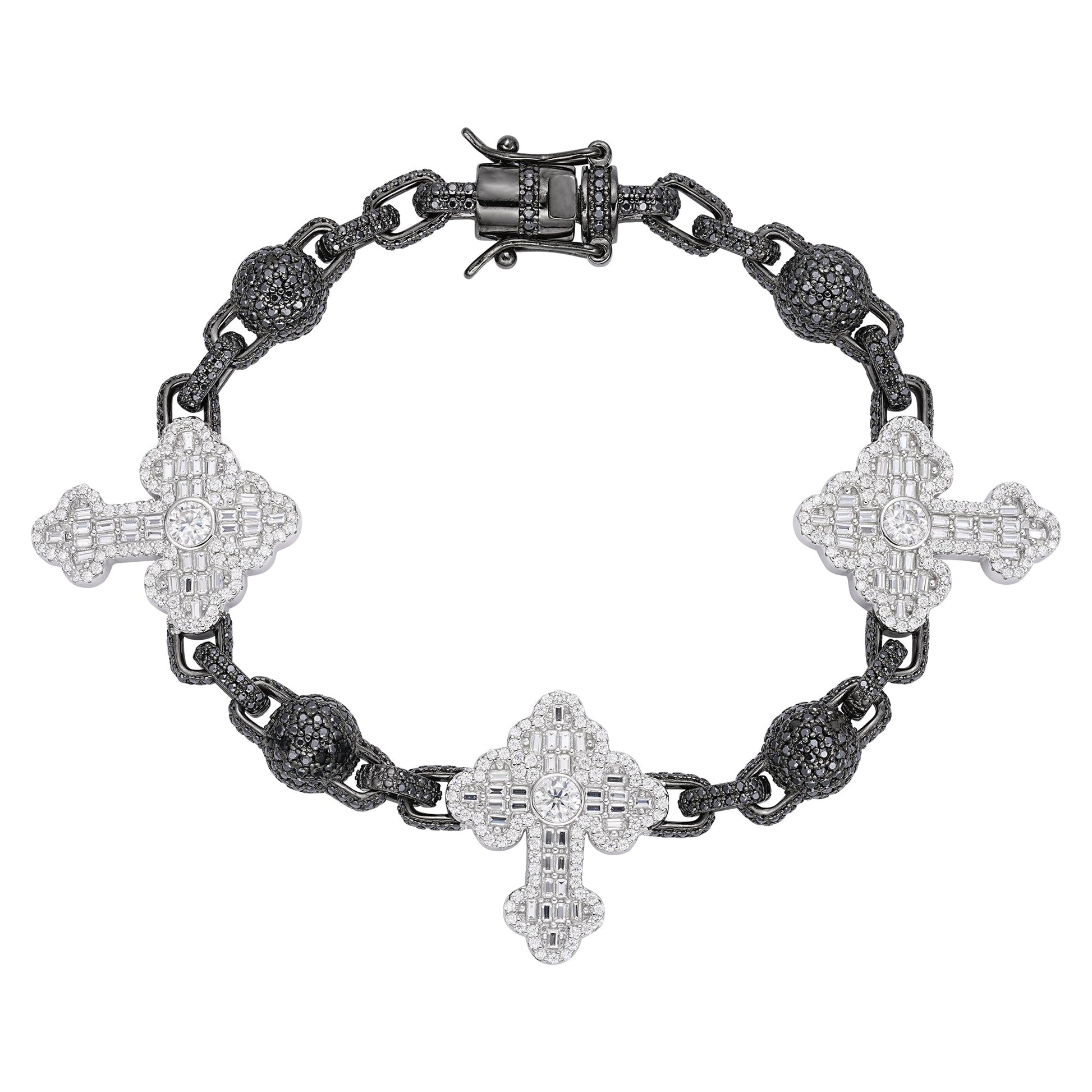 Sterling Silver Round Baguette Moissanite Cross Religious 8 Inch Bracelet RP+BP 10-1/6 Cttw