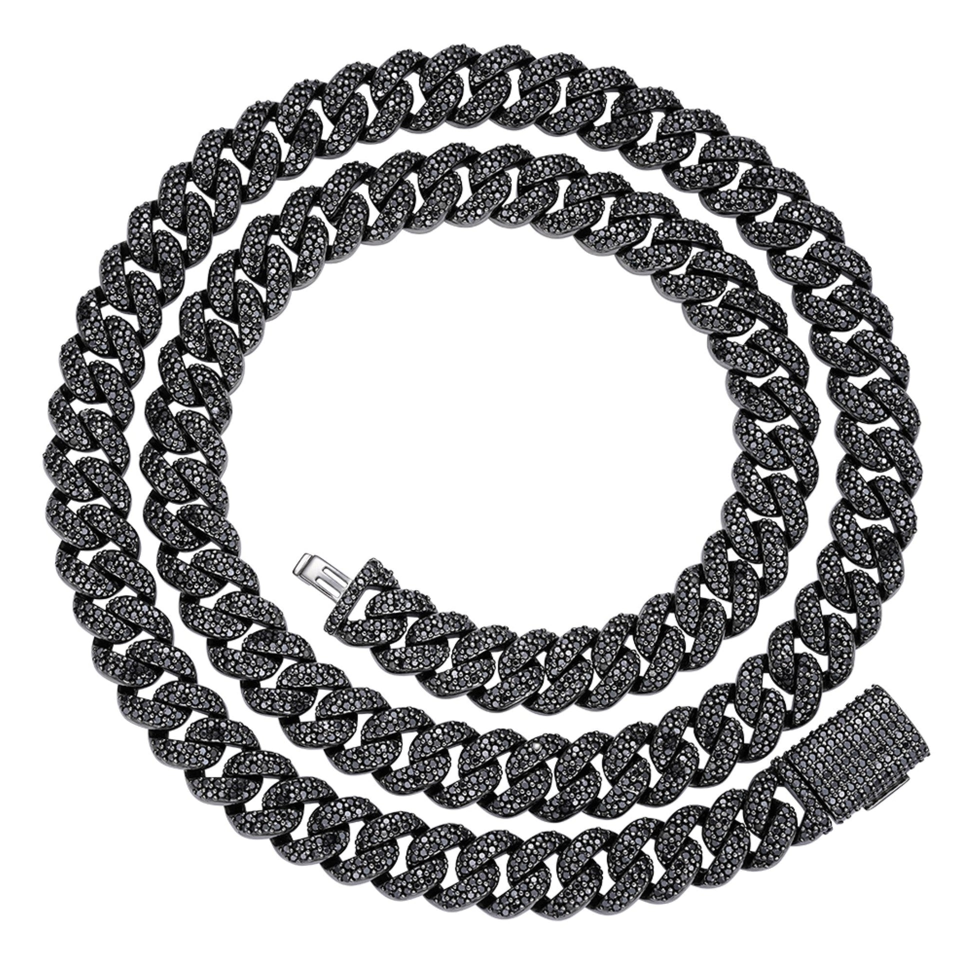 Sterling Silver 10mm Round Black Moissanite Miami Cuban Chain 22 Inch Mens Necklace BP+BP 13-5/8 Cttw