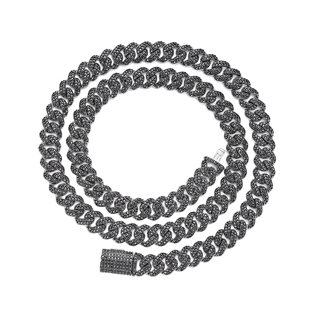 Silver Silver 10mm Round Black Moissanite Miami Cuban 22 Inch Mens Necklace RP+BP 13-5/8 Cttw