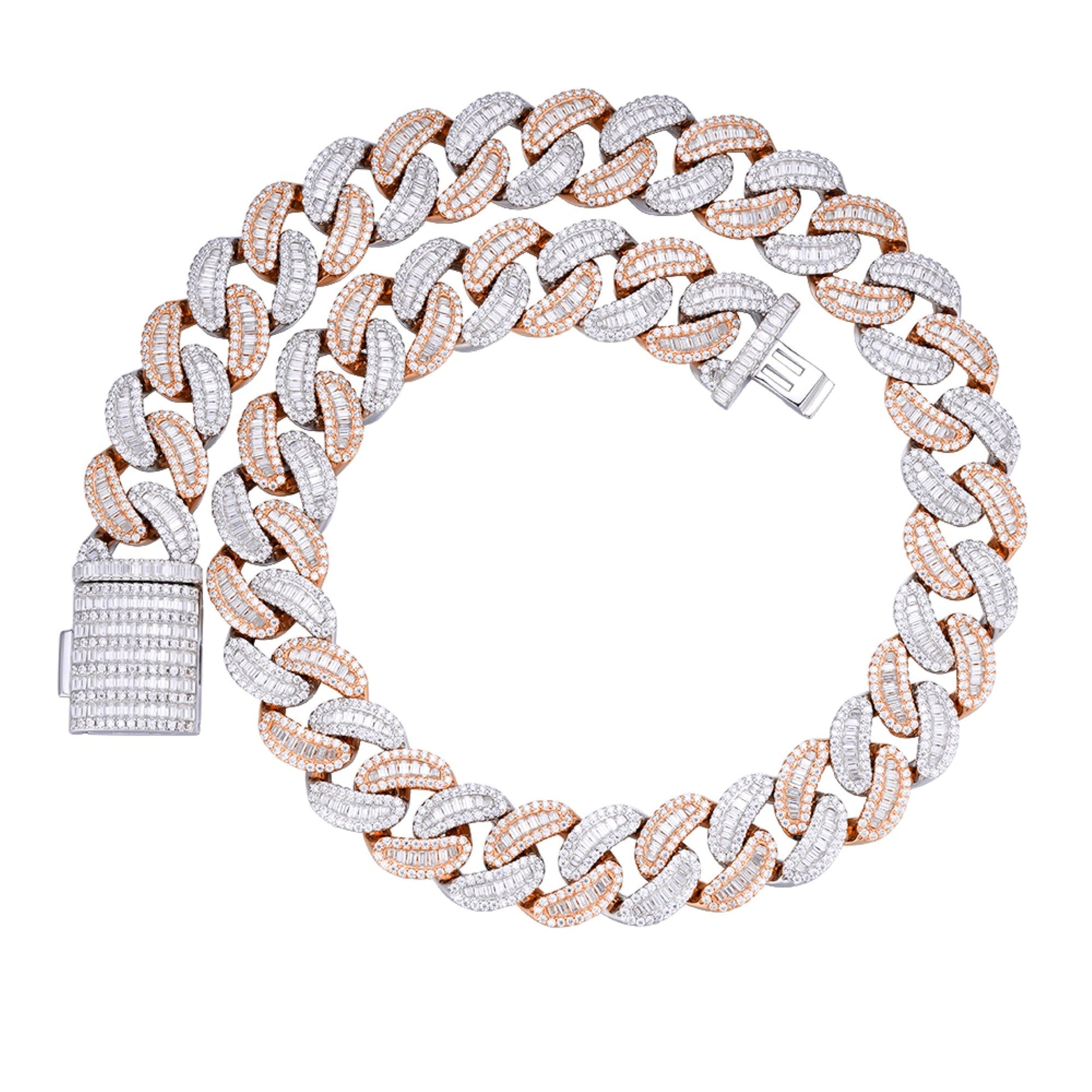 Sterling Silver Round 20mm Moissanite Round and Baguette in Centre Cuban 22 Inch Necklace RP+PP 61-3/4 Cttw