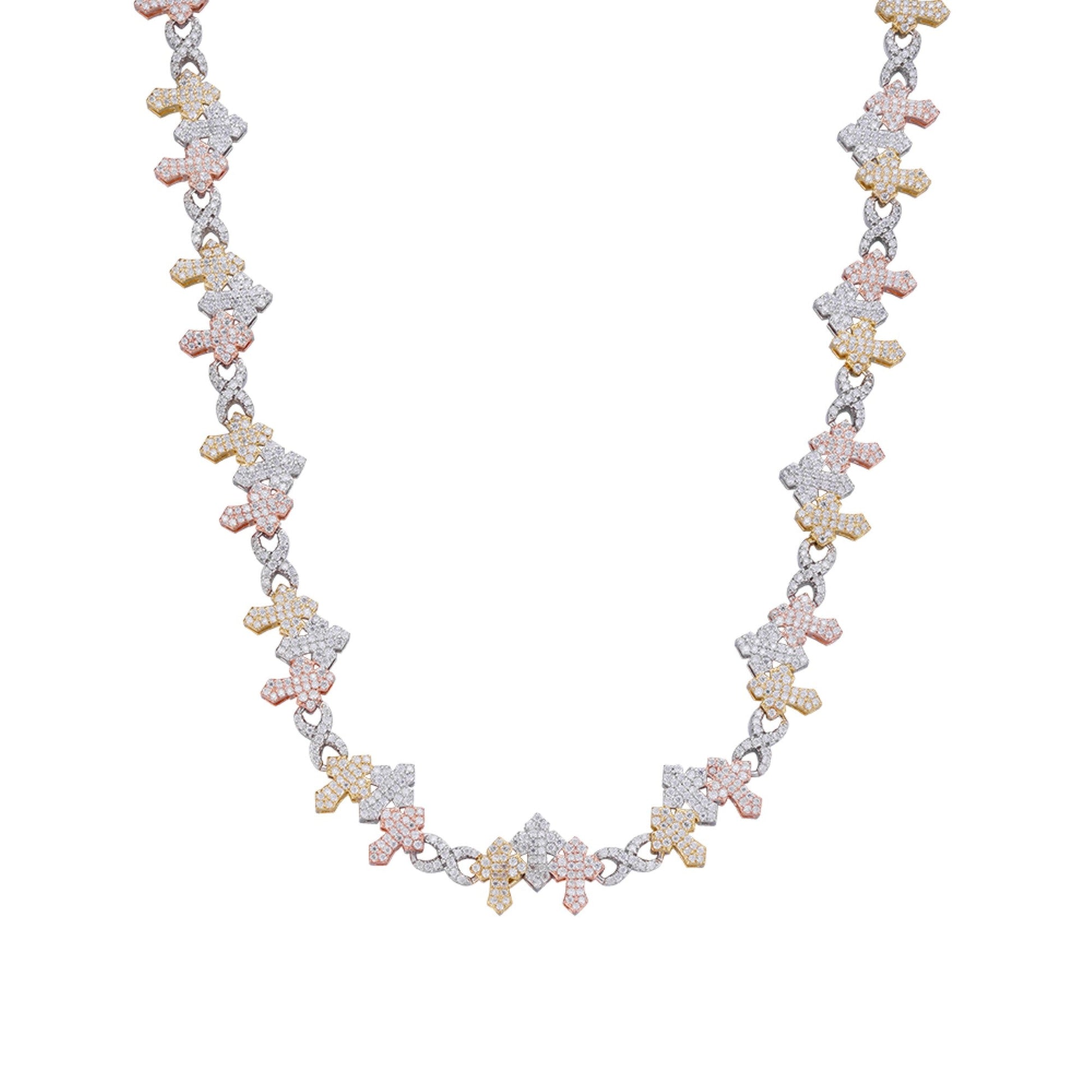 Sterling Silver Round Moissanite Infinity 3 Cross 22 Inch Religious Necklace RP+GP+PP 9-5/8 Cttw