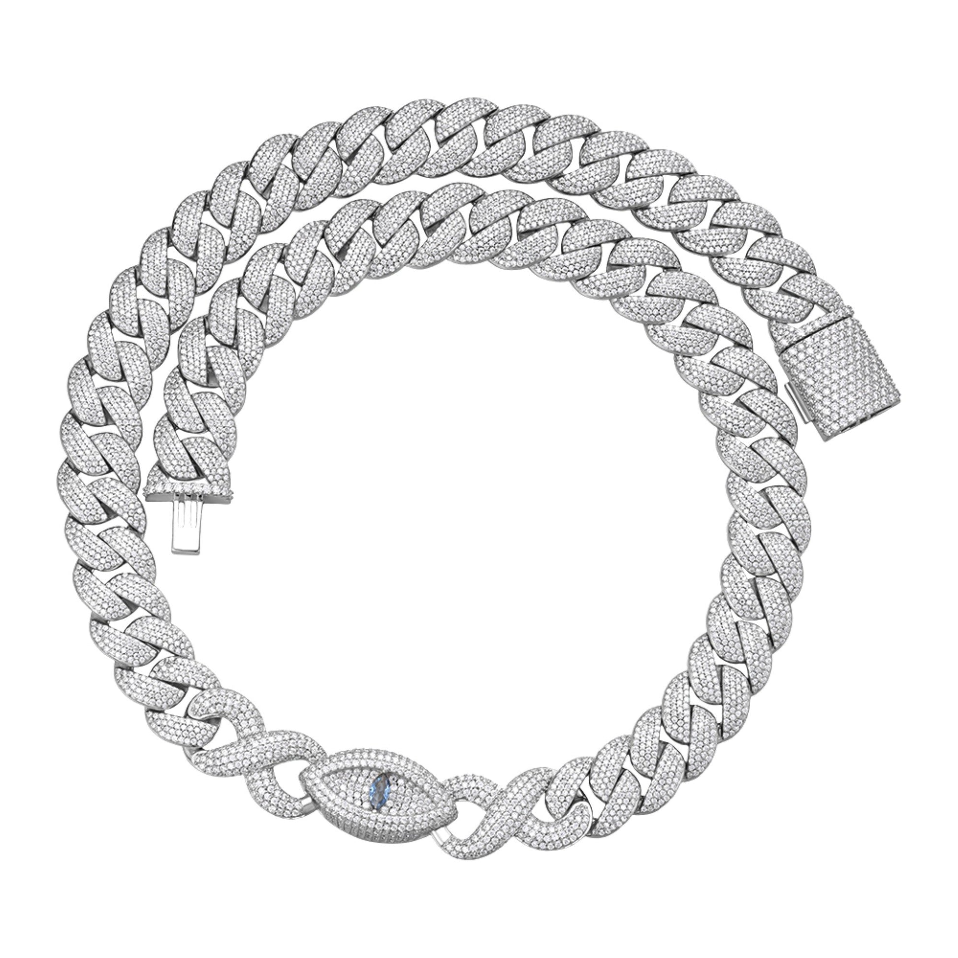 Sterling Silver Round Moissanite 15mm Inifinity Cuban With Evil Eye Designer 22 Inch Mens Necklace RP 27-1/8 Cttw