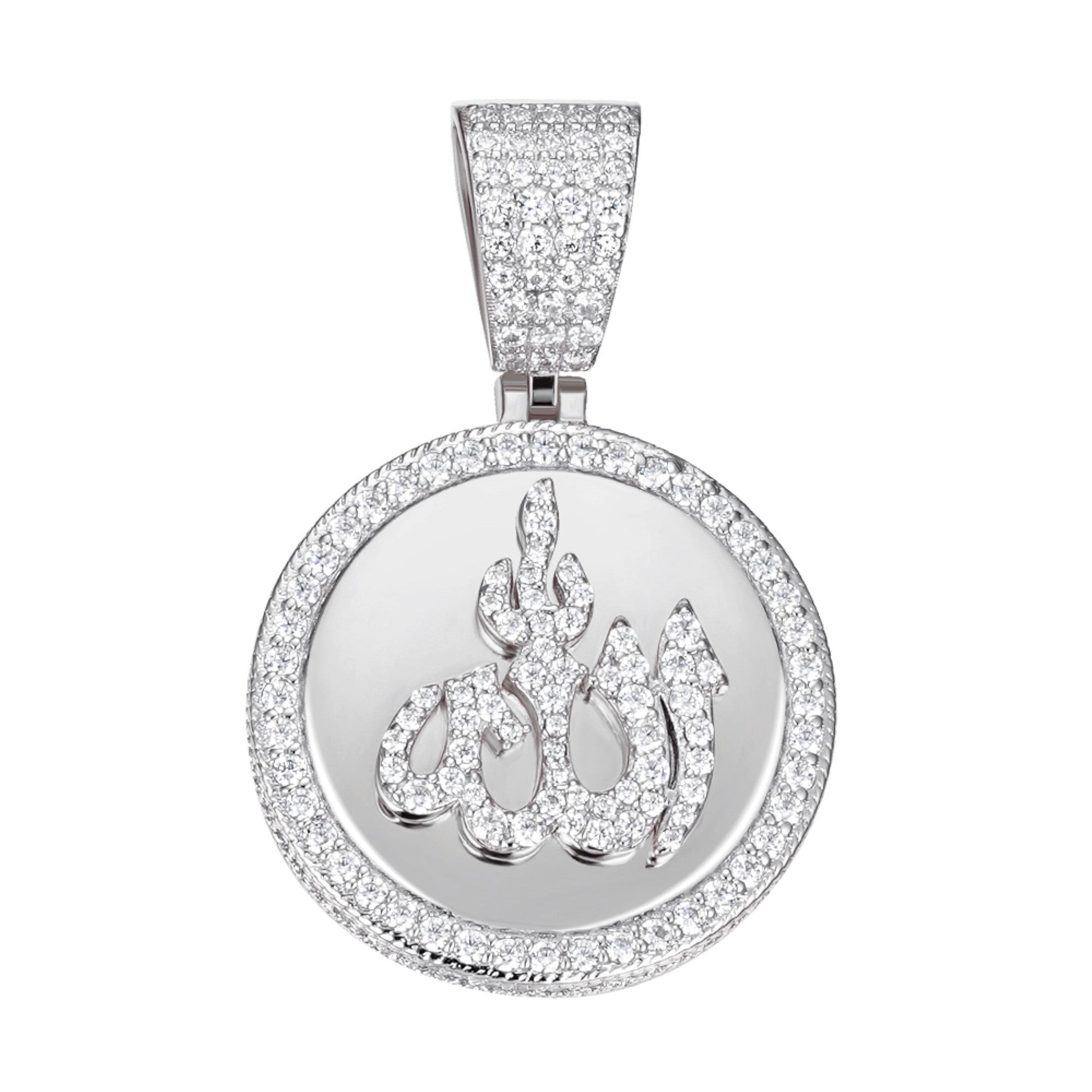 Sterling Silver 35mm Round Moissanite Muslim God Allah Religious Pendant RP 4-5/8 Cttw