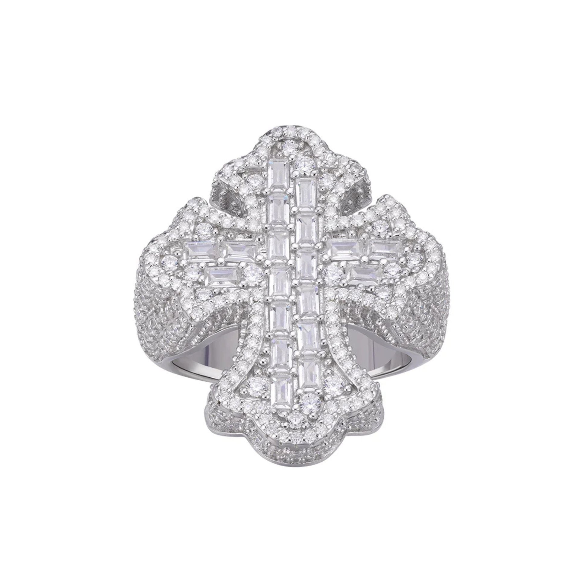 Sterling Silver Round Moissanite With White CZ Mens Cross Religious SZ 10 Ring RP 2-5/8 Cttw