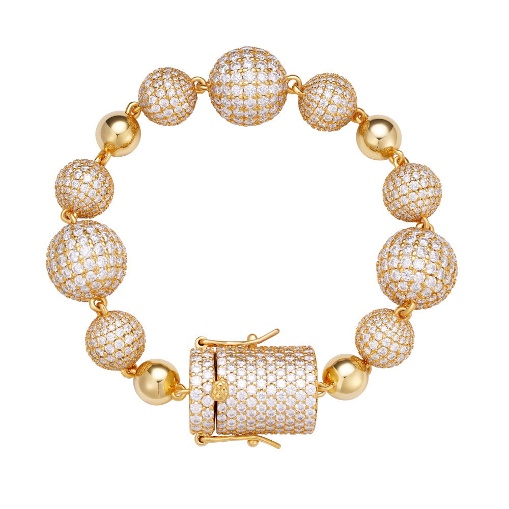 Elevate your style with the warmth and glamour Moissanite Bead Ball Gold Plated Bracelet. Designed to capture attention, Each bead is meticulously encrusted with round-cut moissanite stones, creating a seamless, high-drip surface that catches the light with every movement. This bracelet exudes boldness and luxury from every angle.