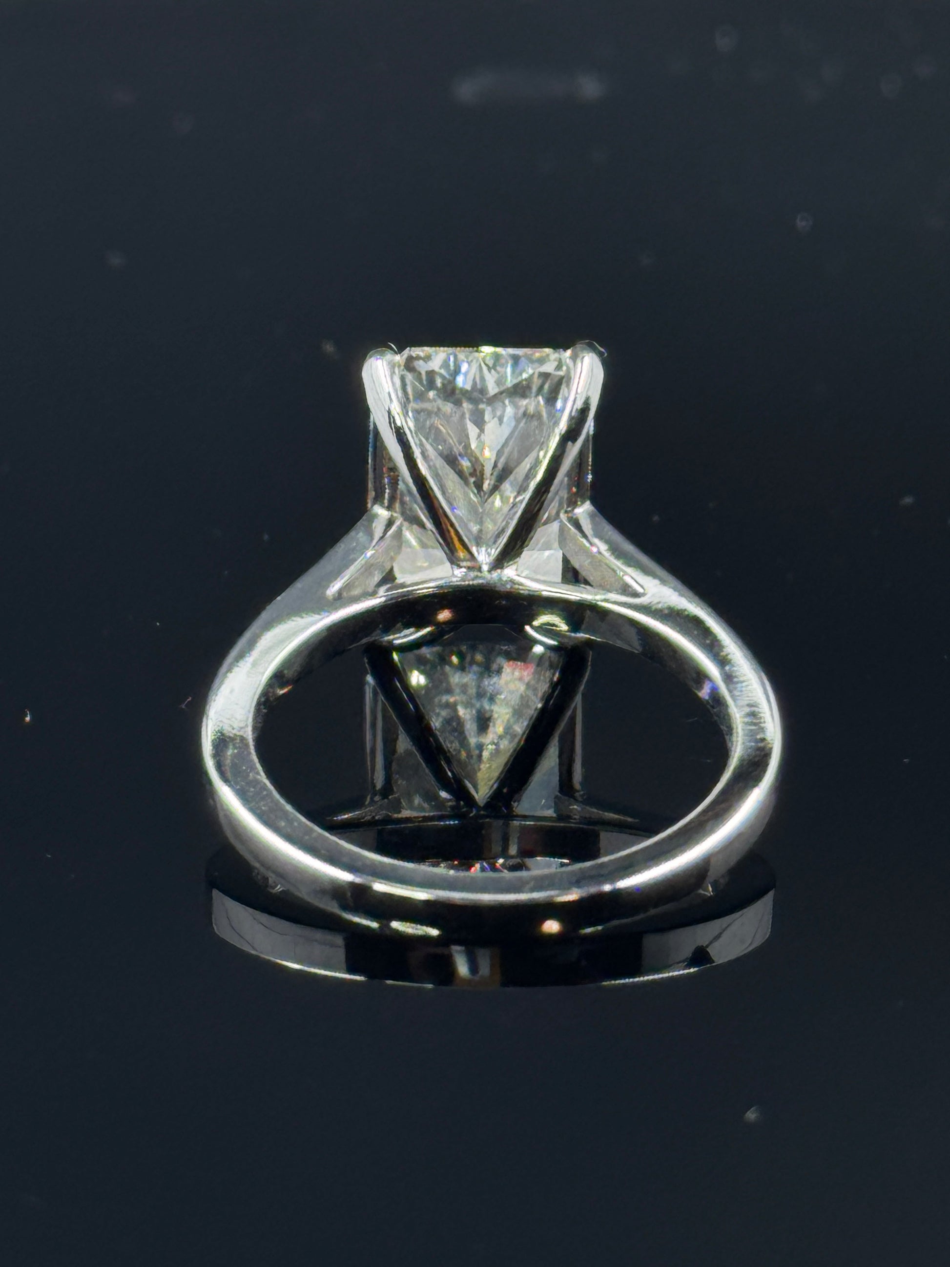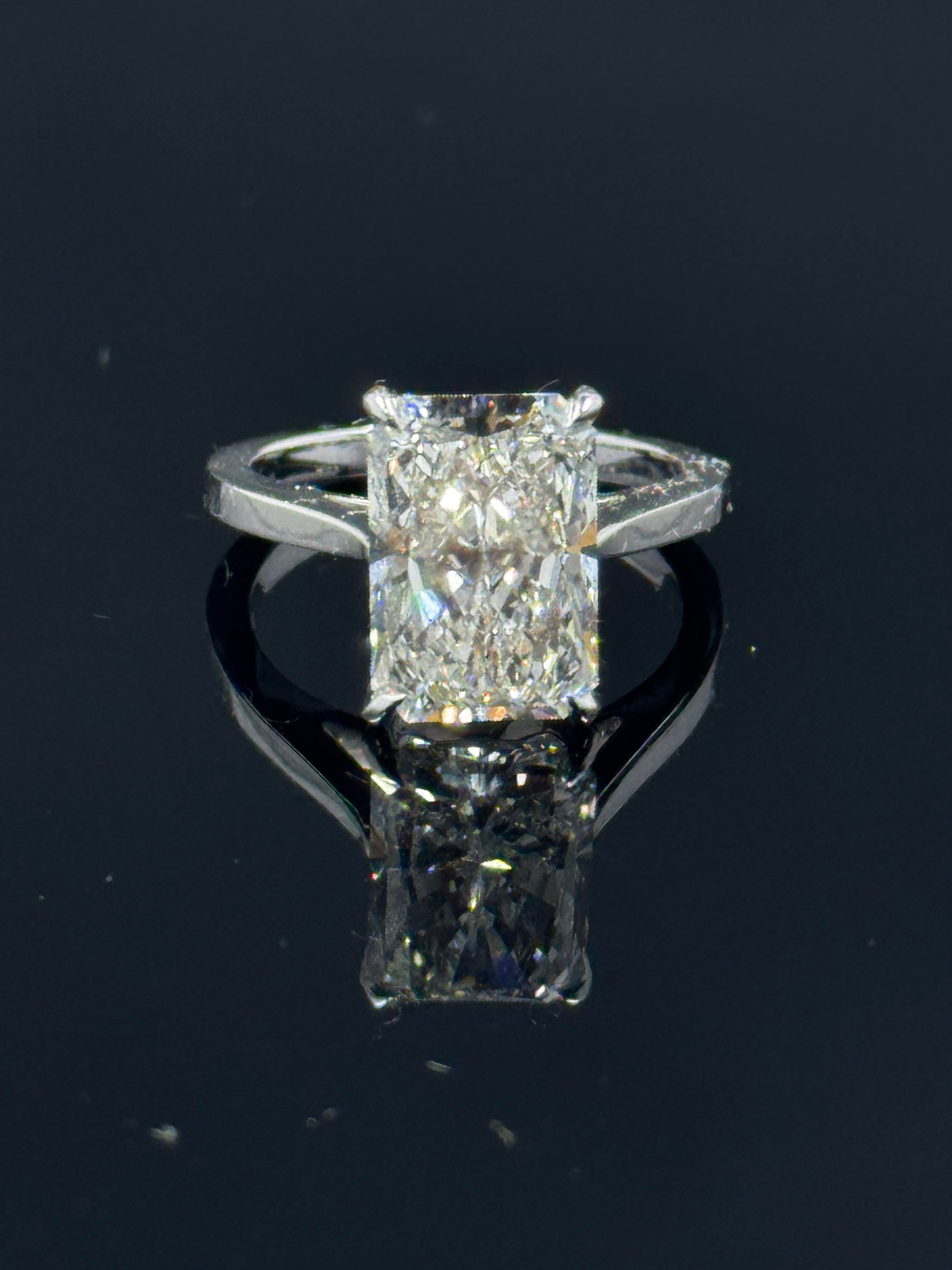 Classic elegance with bold brilliance — this radiant-cut diamond engagement ring is crafted in 14k white gold with a refined cathedral setting , designed to elevate the center stone for maximum presence. The centerpiece is a certified 5.08ct radiant-cut lab-grown diamond , graded F VS1 with Excellent polish, Excellent symmetry, and None fluorescence (IGI #673403999). The cathedral design lifts the diamond gracefully, creating a timeless silhouette with striking sparkle. Metal: 14k White Gold Center Stone: 5.08ct Radiant-Cut Lab-Grown Diamond (F VS1, EX/EX, None) Certification: IGI 673403999 Setting Style: Cathedral setting Ring Size: 7 A breathtaking engagement ring — balancing architectural elegance with radiant fire, designed to symbolize love in its boldest form. ✨ Ethically grown. Expertly crafted. Forever brilliant.