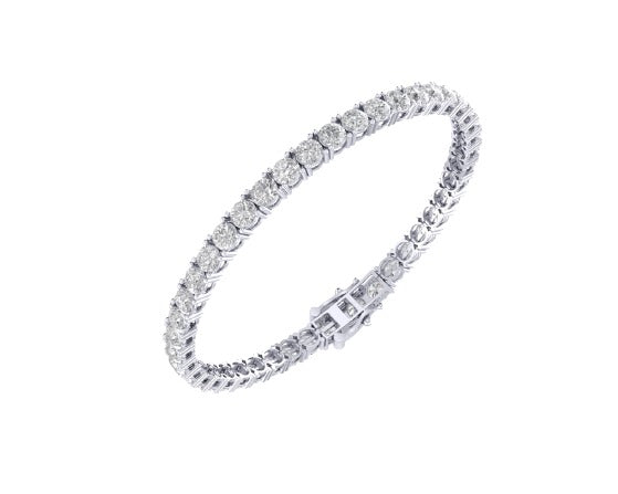 Add a touch of everlasting sparkle to your wrist with this exquisite diamond tennis bracelet. Featuring a line of perfectly matched round diamonds set in a high-polish 10k white metal, this bracelet exudes sophistication and brilliance. Whether worn alone or stacked, its elegant box clasp ensures a secure and seamless fitideal for both special occasions and daily glamour.