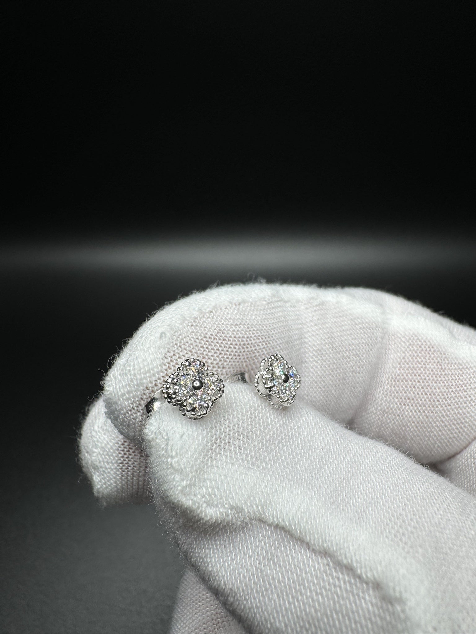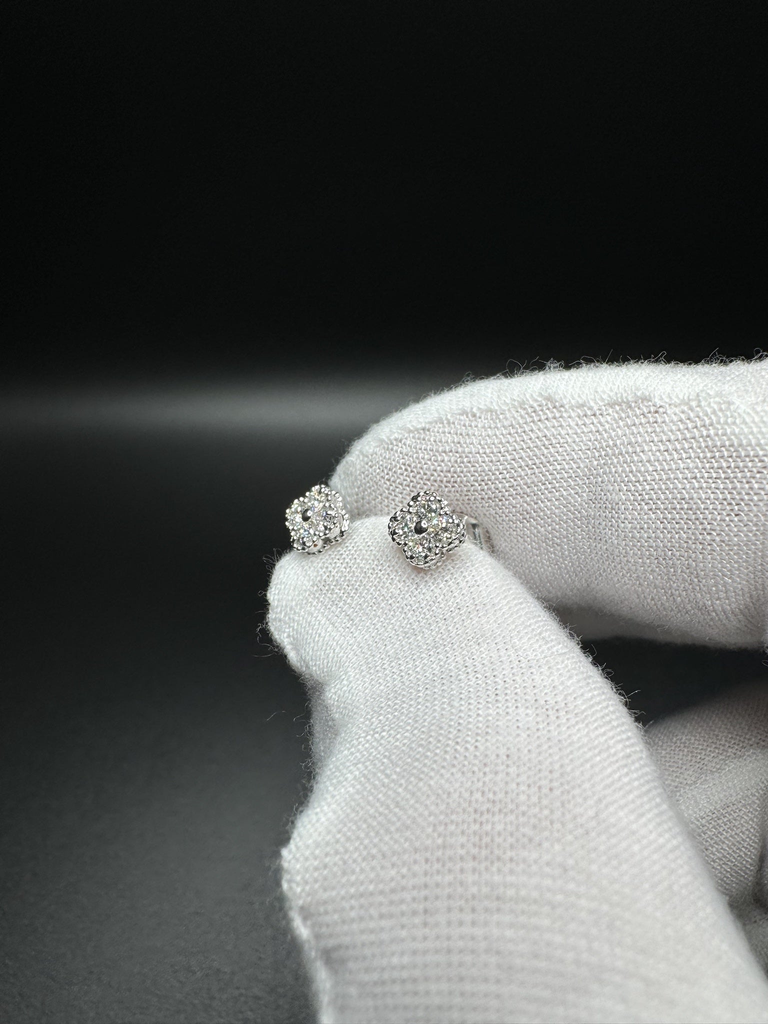 7mm Silver 1/4ctw Lab Diamond Clover/Motif Studs 1.0g
