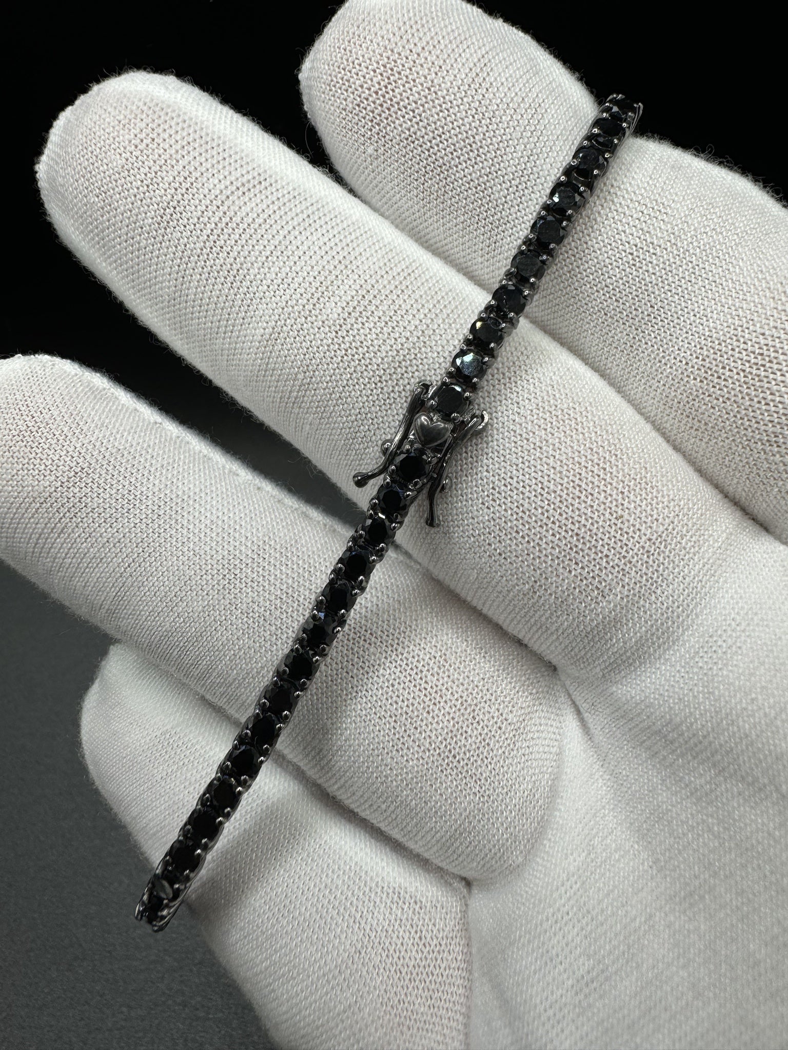 8” 3mm Silver Black Rhodium & Black Spinel Tennis Bracelet 12.0g
