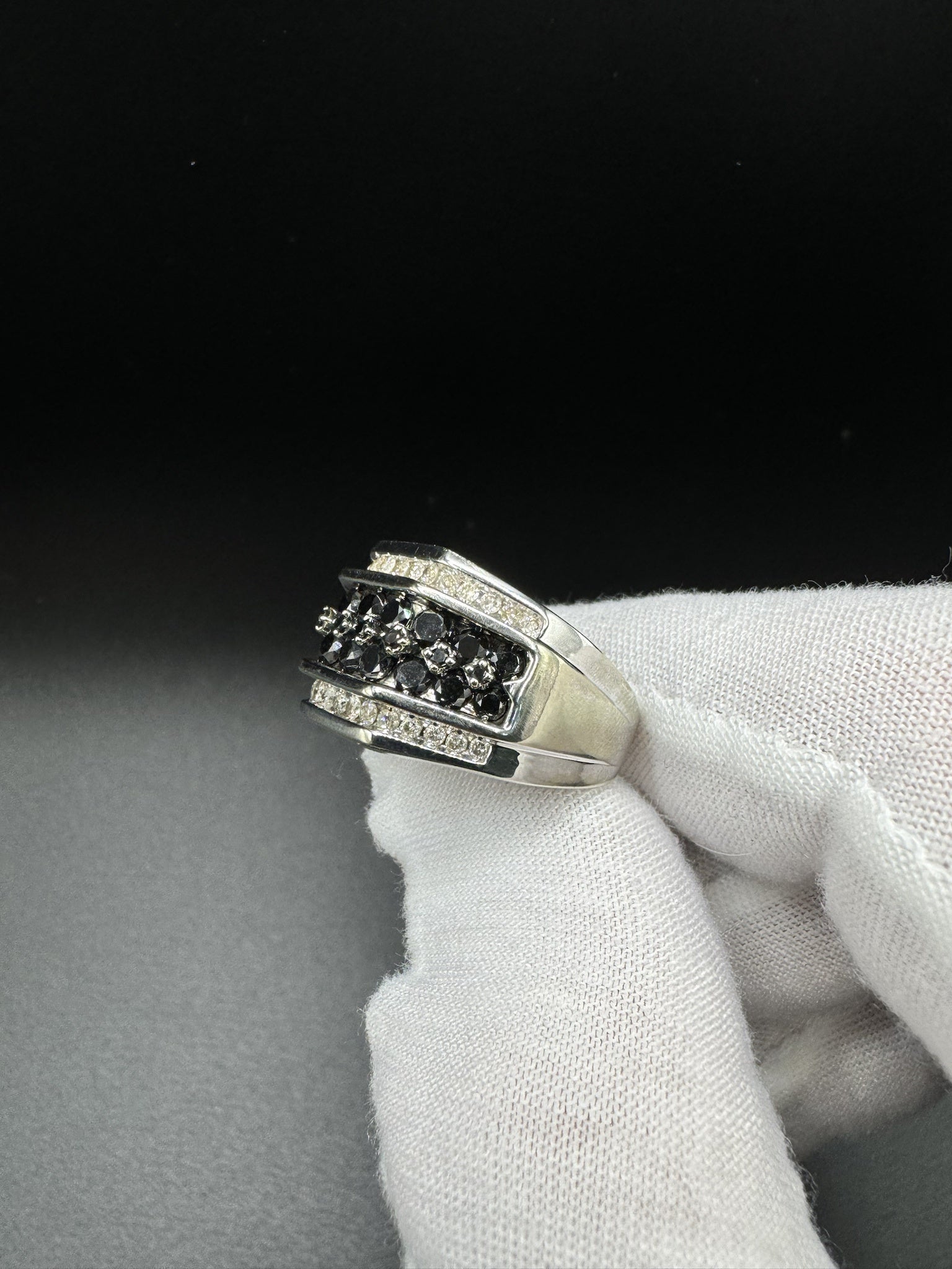 Size 10 10k White Gold est 1ctw Black Diamond & 1/3ctw Diamond Ring 10.2g