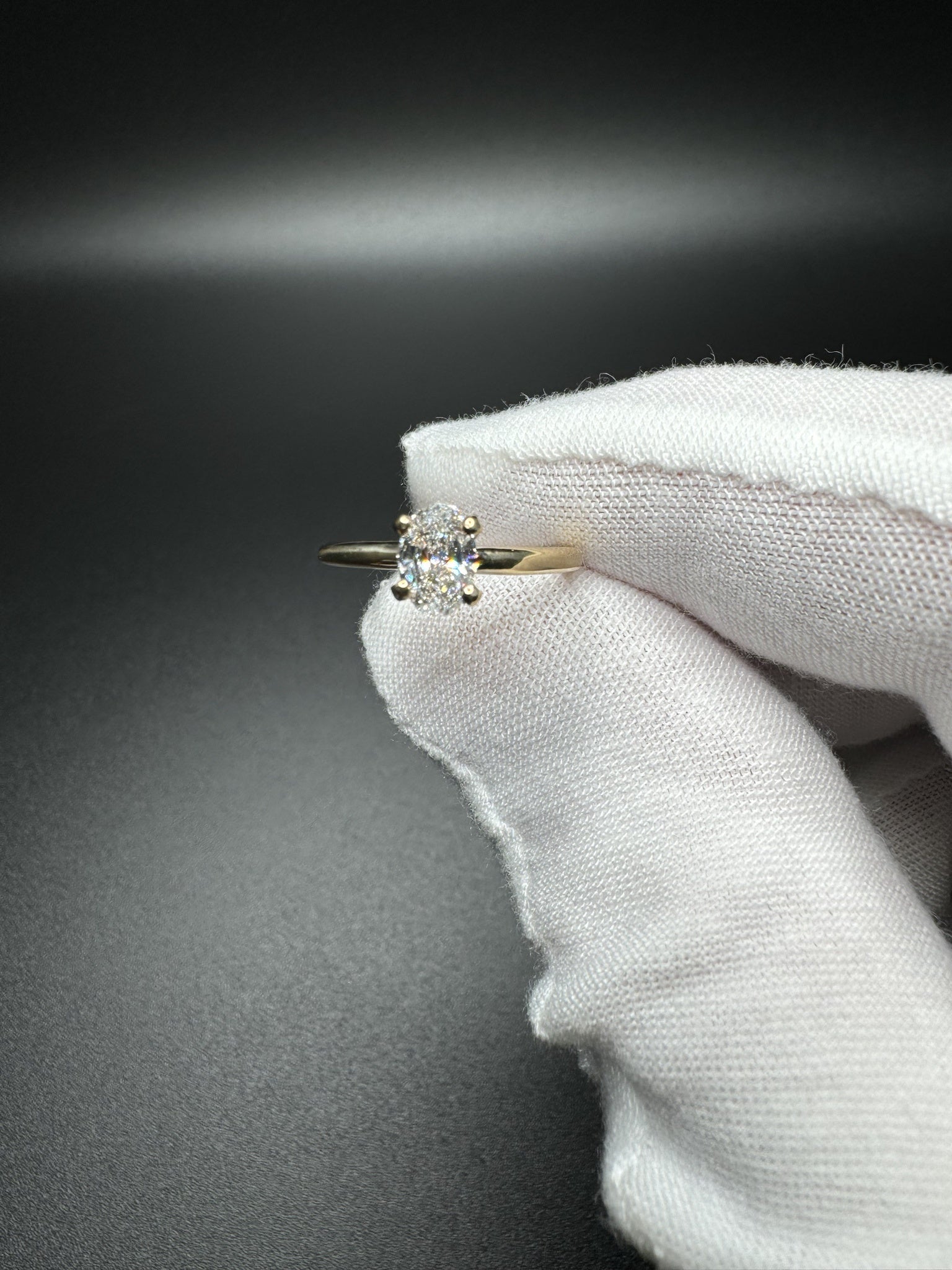 Size 4.5 14k Yellow Gold 1/2ct Oval Lab Diamond Solitaire Engagement Ring 1.64g