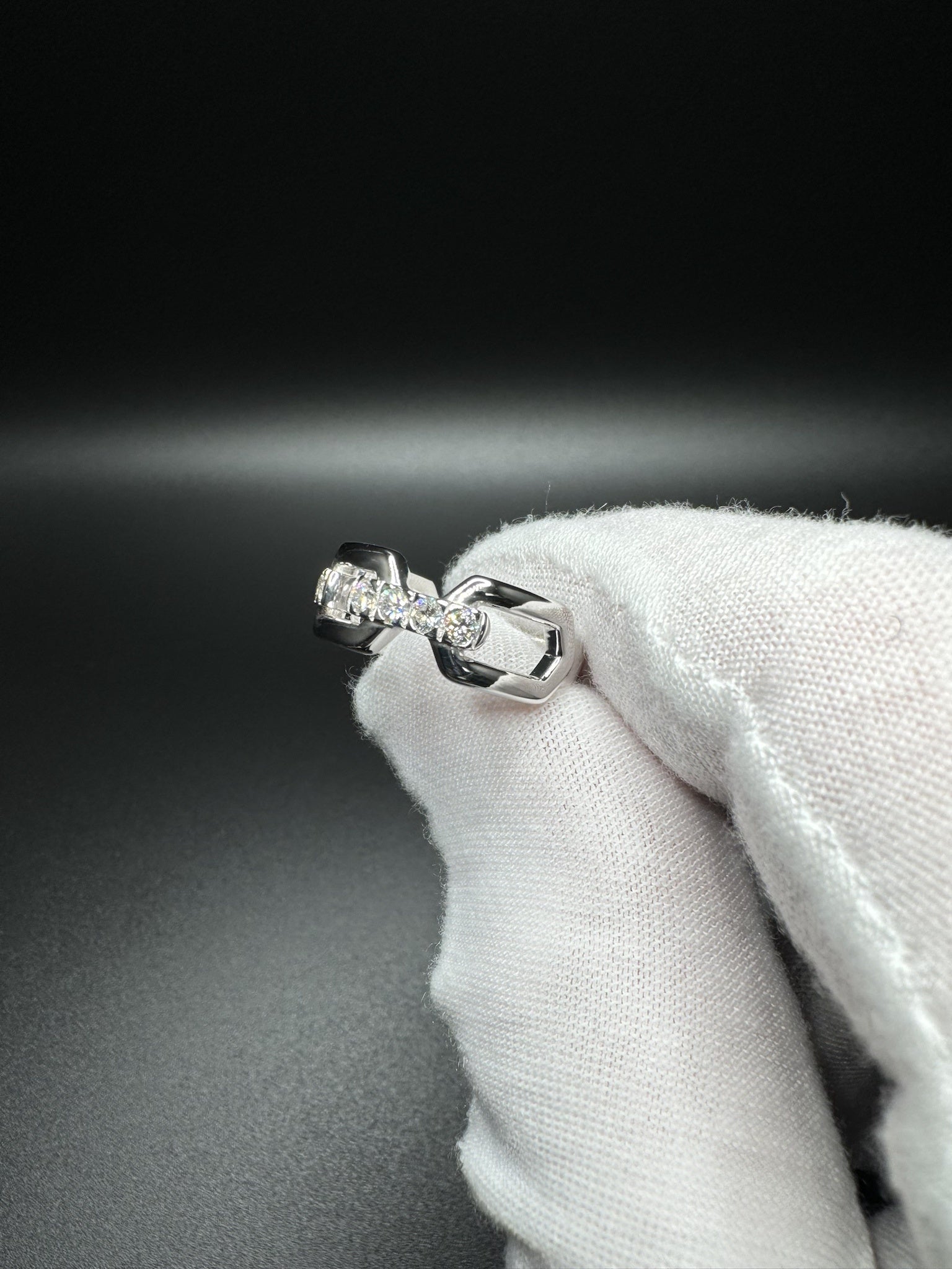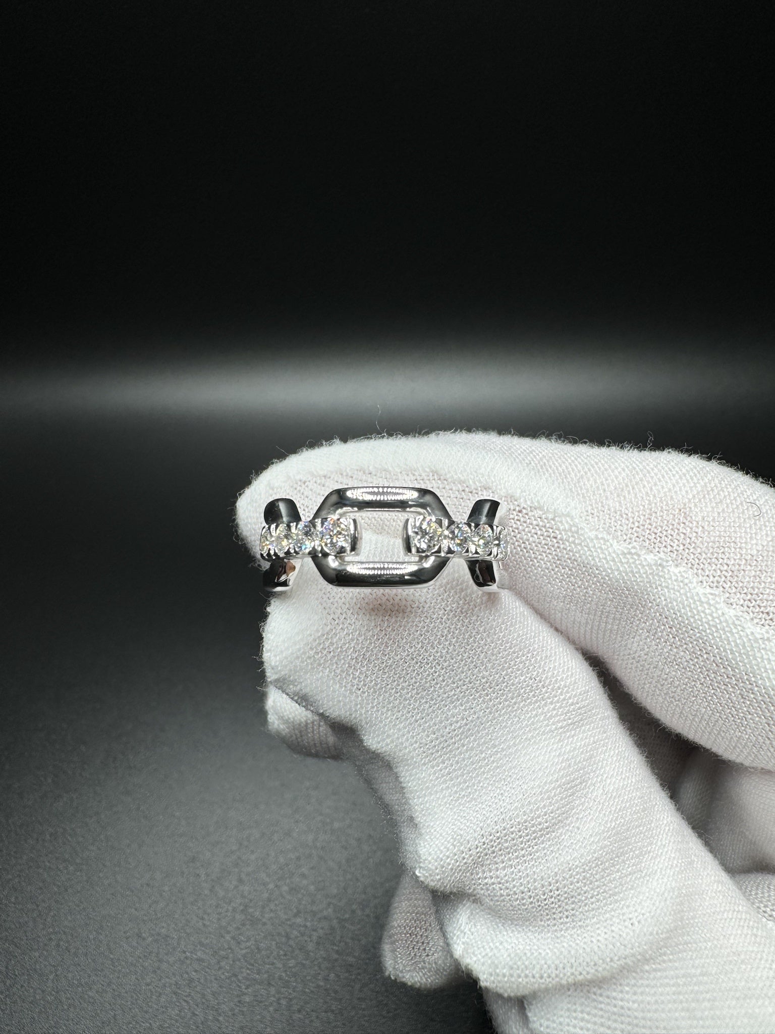 Size 8 Silver 1/2ctw Lab Diamond Link Style Ring 5.4g
