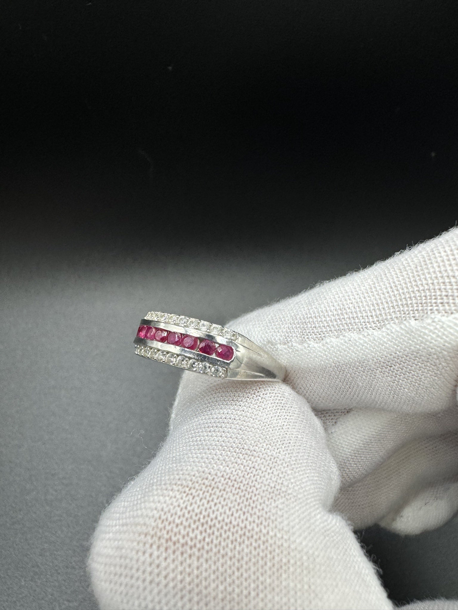 Size 9 Silver 1/3ctw Natural Diamond & Natural Ruby Ring 3.8g