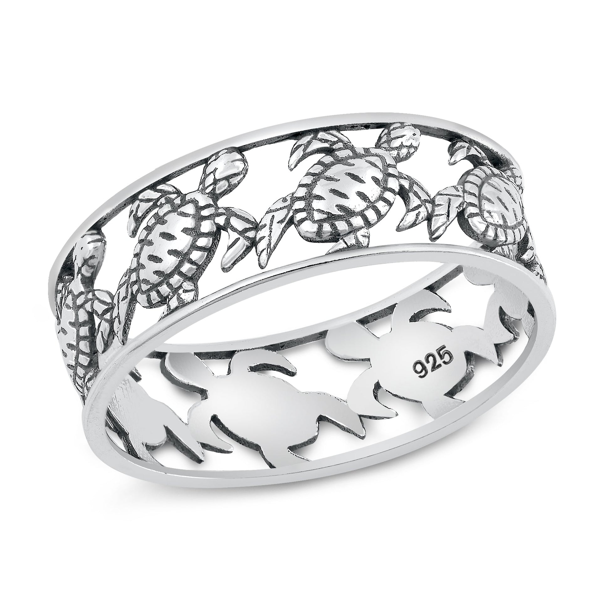 Sterling Silver Ring 925 Sea Turtles Eternity Ring Ocean Beach Band Sizes 5-10