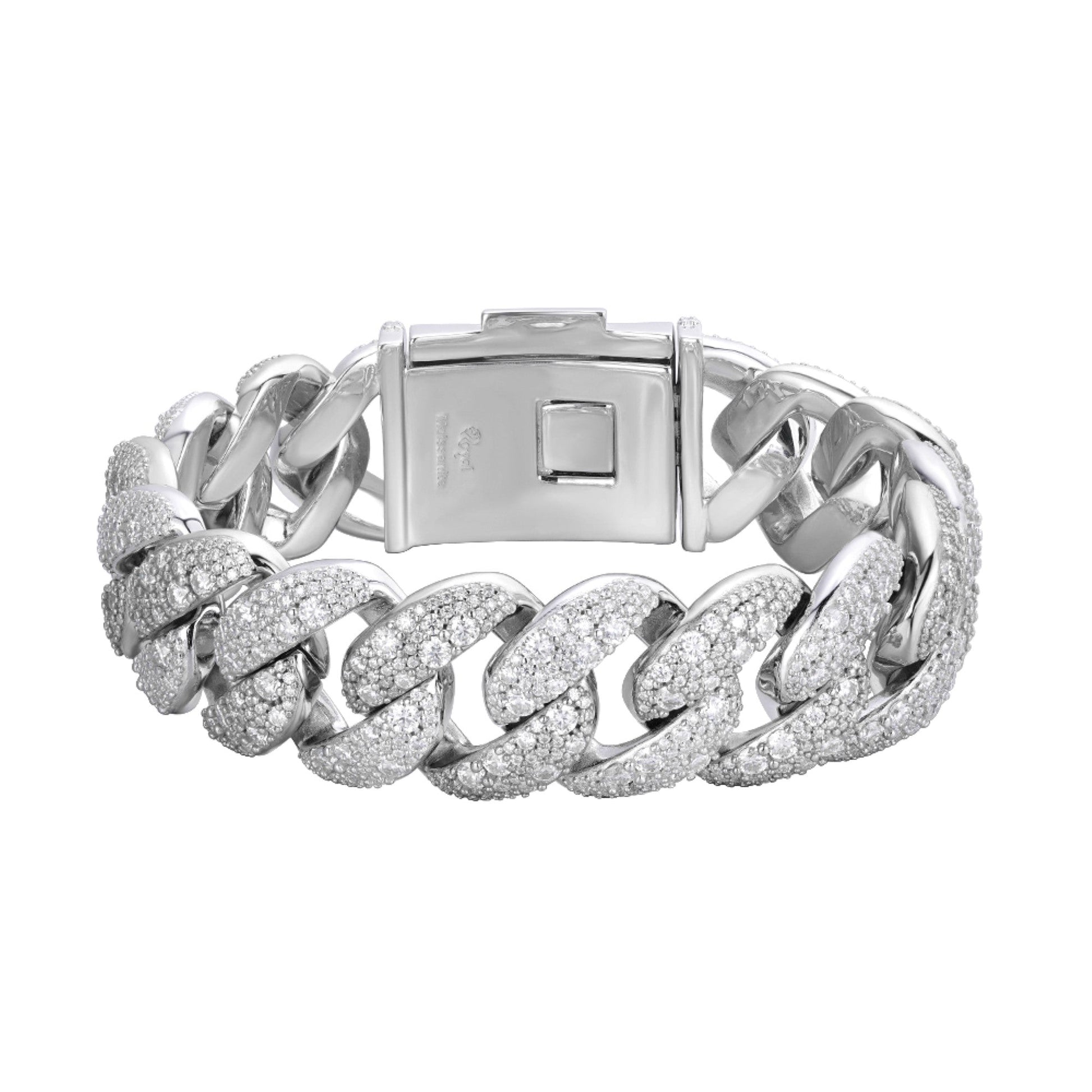 Sterling Silver Round 22mm Moissanite Miami Cuban 8.5 Inch Mosaic Setting Bracelet RP 26 Cttw — crafted for everyday wear and standout style. Made by Royal Jewelry Wholesale, known for quality materials and reliable craftsmanship. Comfortable, durable, and easy to gift — ready to ship from our Tulsa-based shop. Popular tags: bracelet, silver, Sterling.