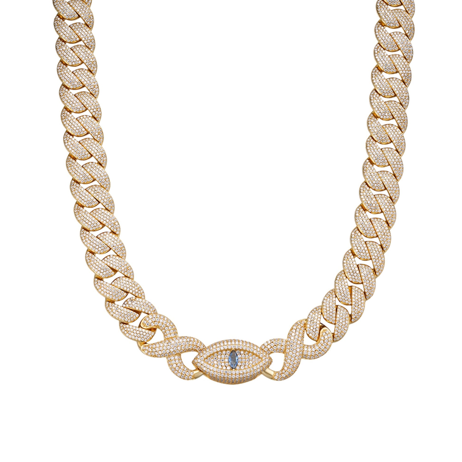 Sterling Silver Round Moissanite 15mm Inifinity Cuban With Evil Eye Designer 22 Inch Mens Necklace GP 27-1/8 Cttw — crafted for everyday wear and standout style. Made by Royal Jewelry Wholesale, known for quality materials and reliable craftsmanship. Comfortable, durable, and easy to gift — ready to ship from our Tulsa-based shop. Popular tags: necklace, silver, Sterling.