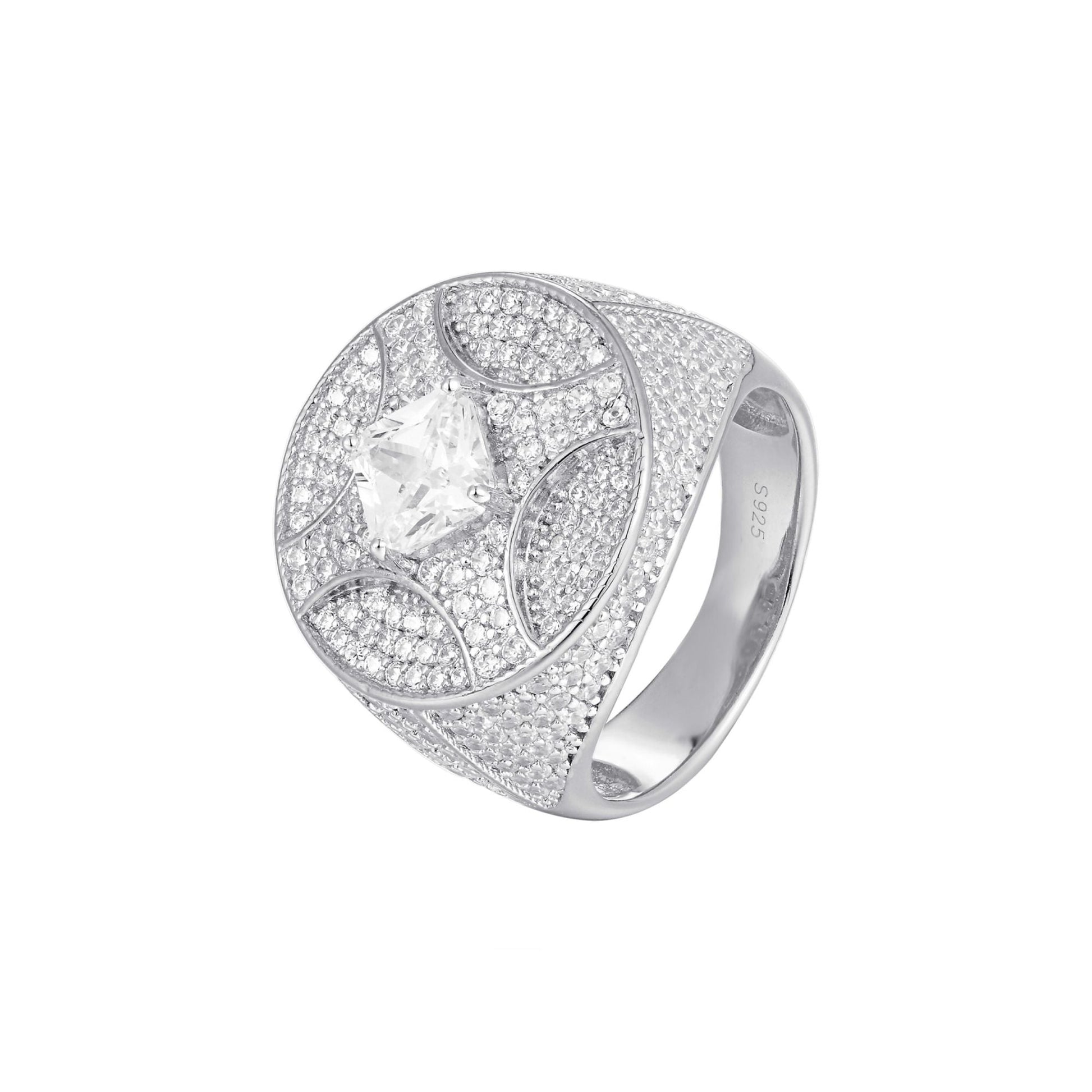 Sterling Silver Round Princess Cut CZ Designer Mens Ring RP